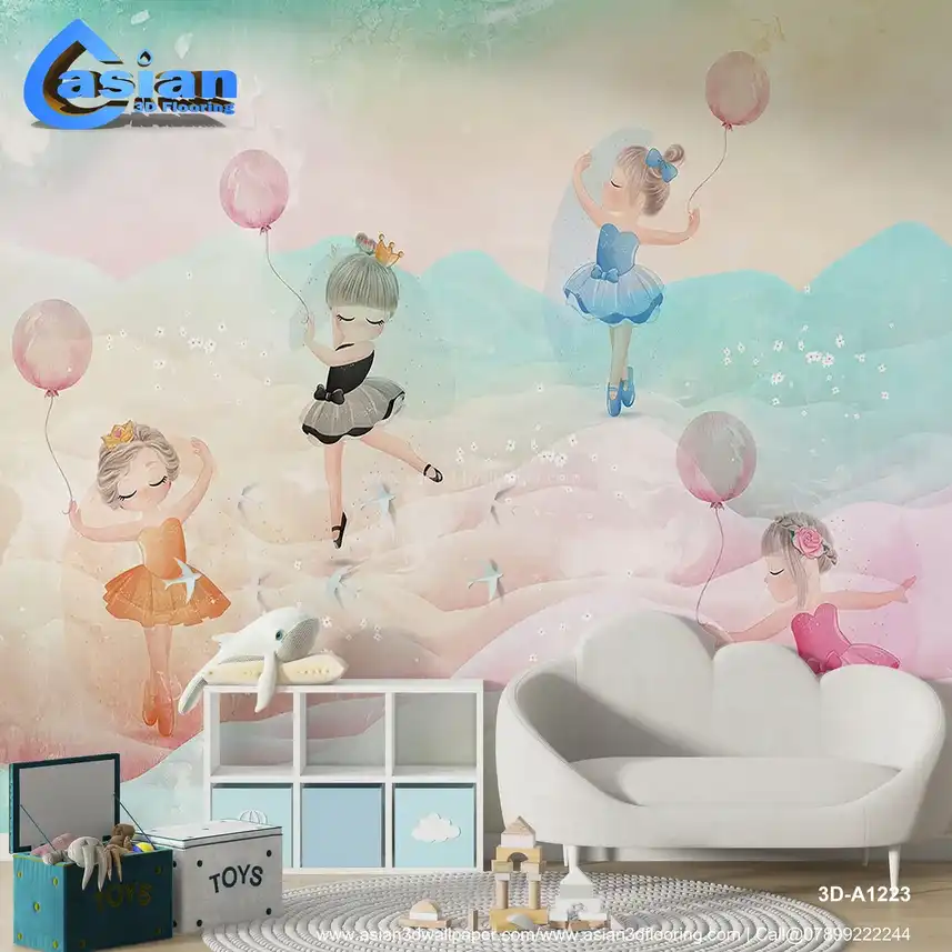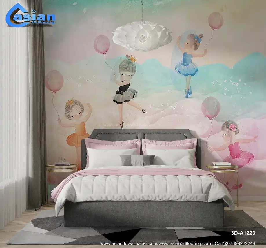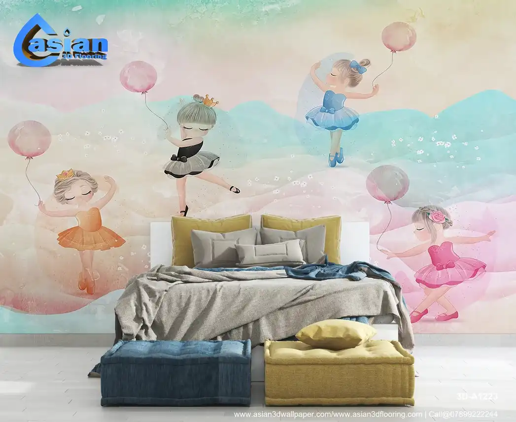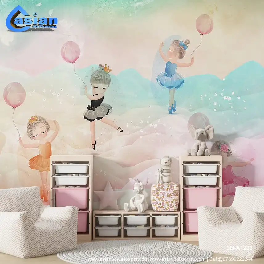 Ballet Girls with Balloons ? Soft Pastel Nursery Wallpaper||3D-A1223