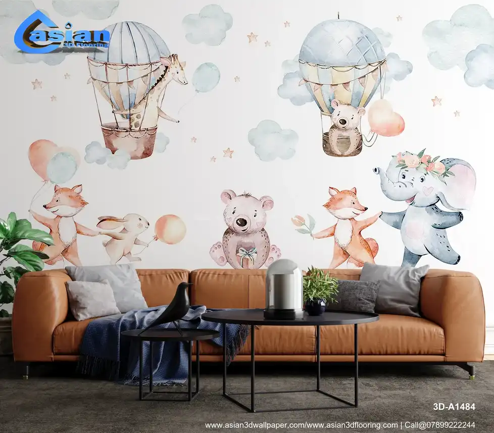 Cute Watercolor Animals with Balloons and Hot Air Balloons||3D-A1484