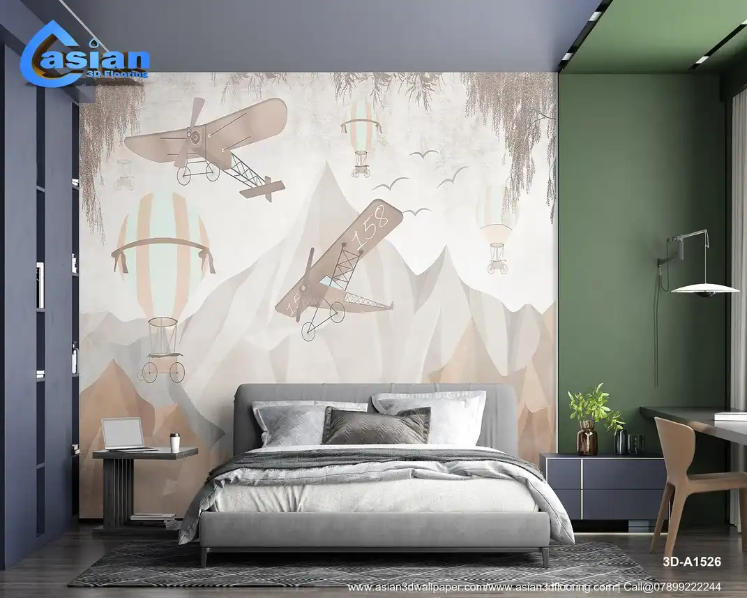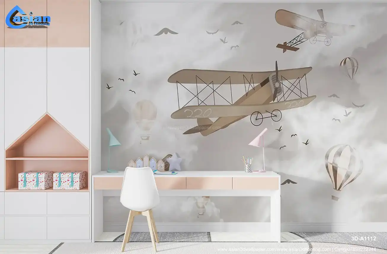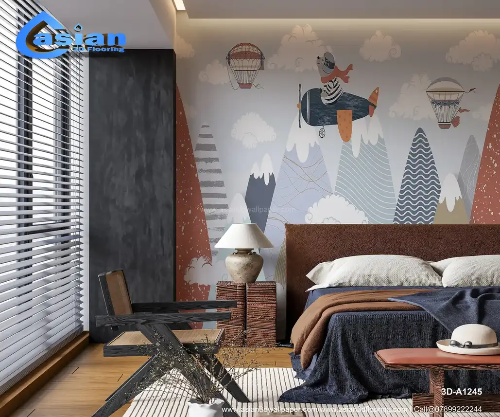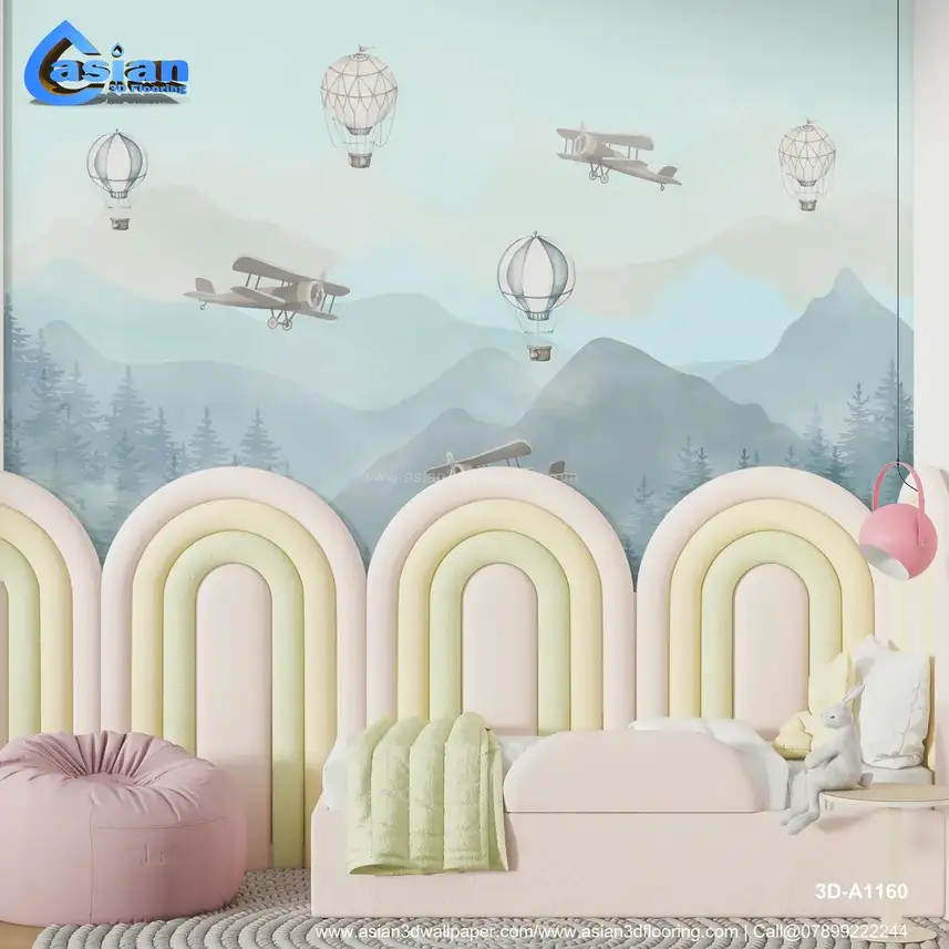 Whimsical Mountains and Air Travel Kids Wallpaper