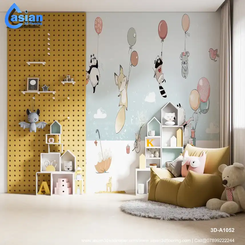 Cute Cartoon Animals with Balloons - Children's Wallpaper & Illus