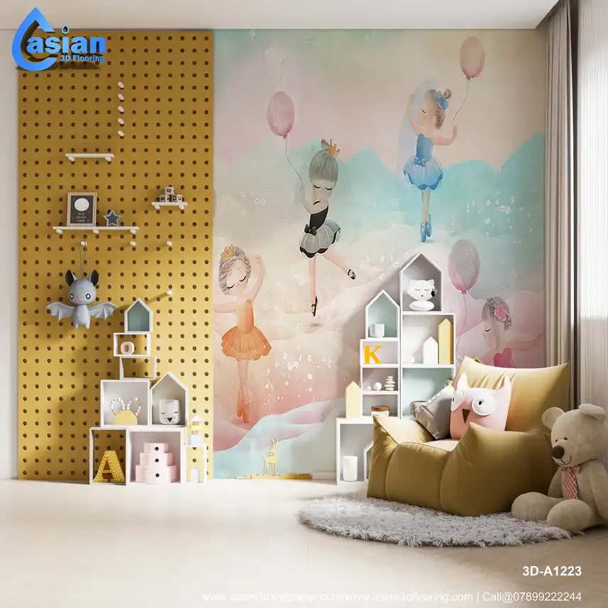 Ballet Girls with Balloons ? Soft Pastel Nursery Wallpaper