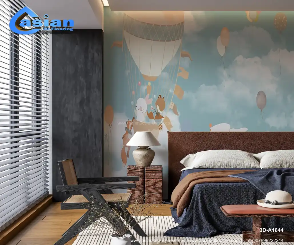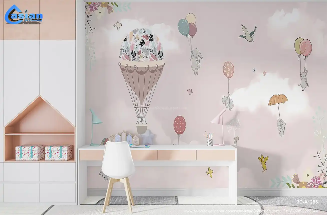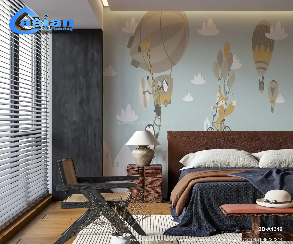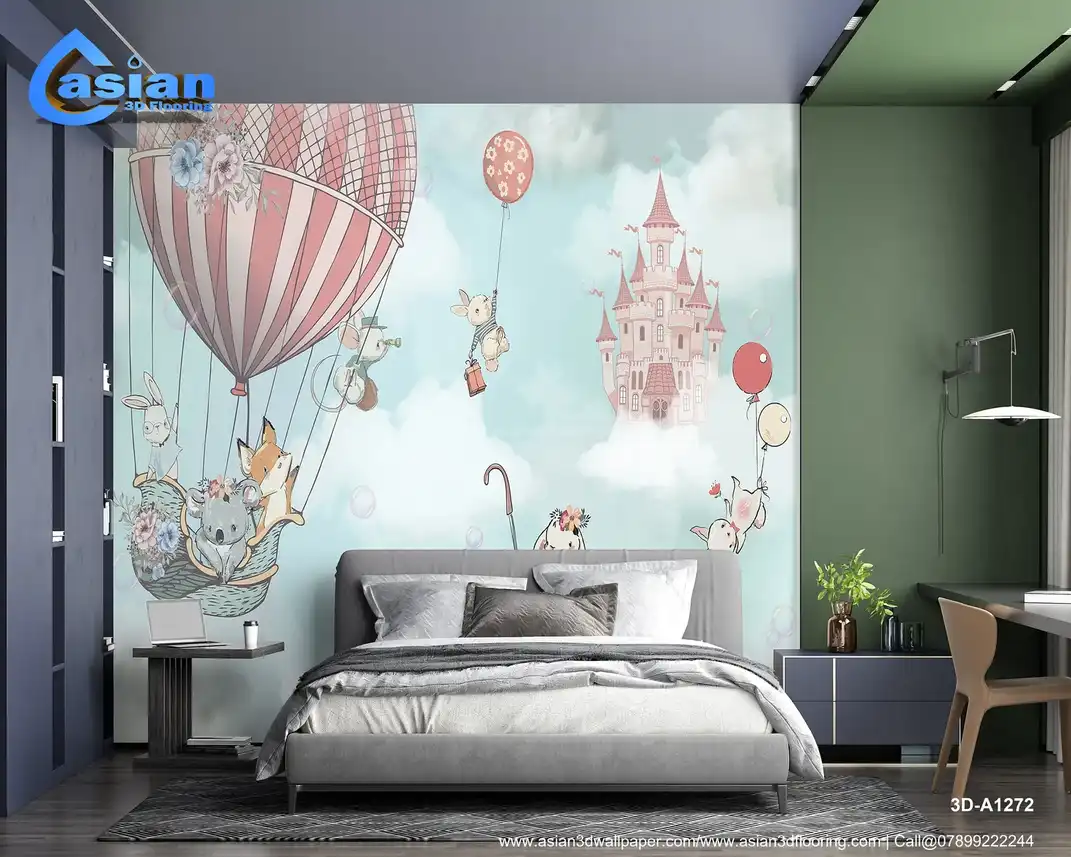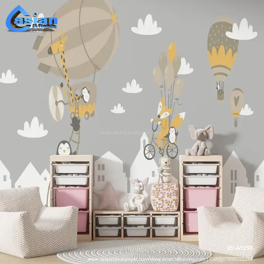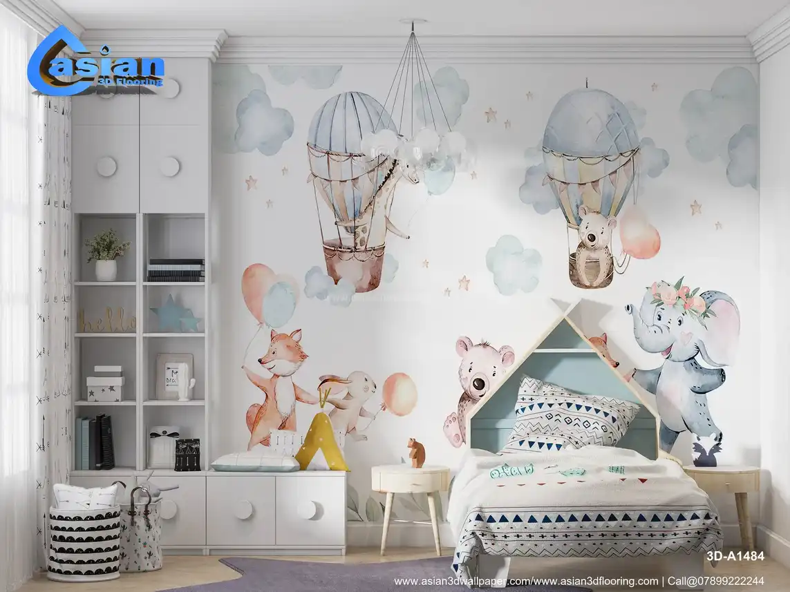 Whimsical Animal Hot Air Balloon Wallpaper for Kids Rooms