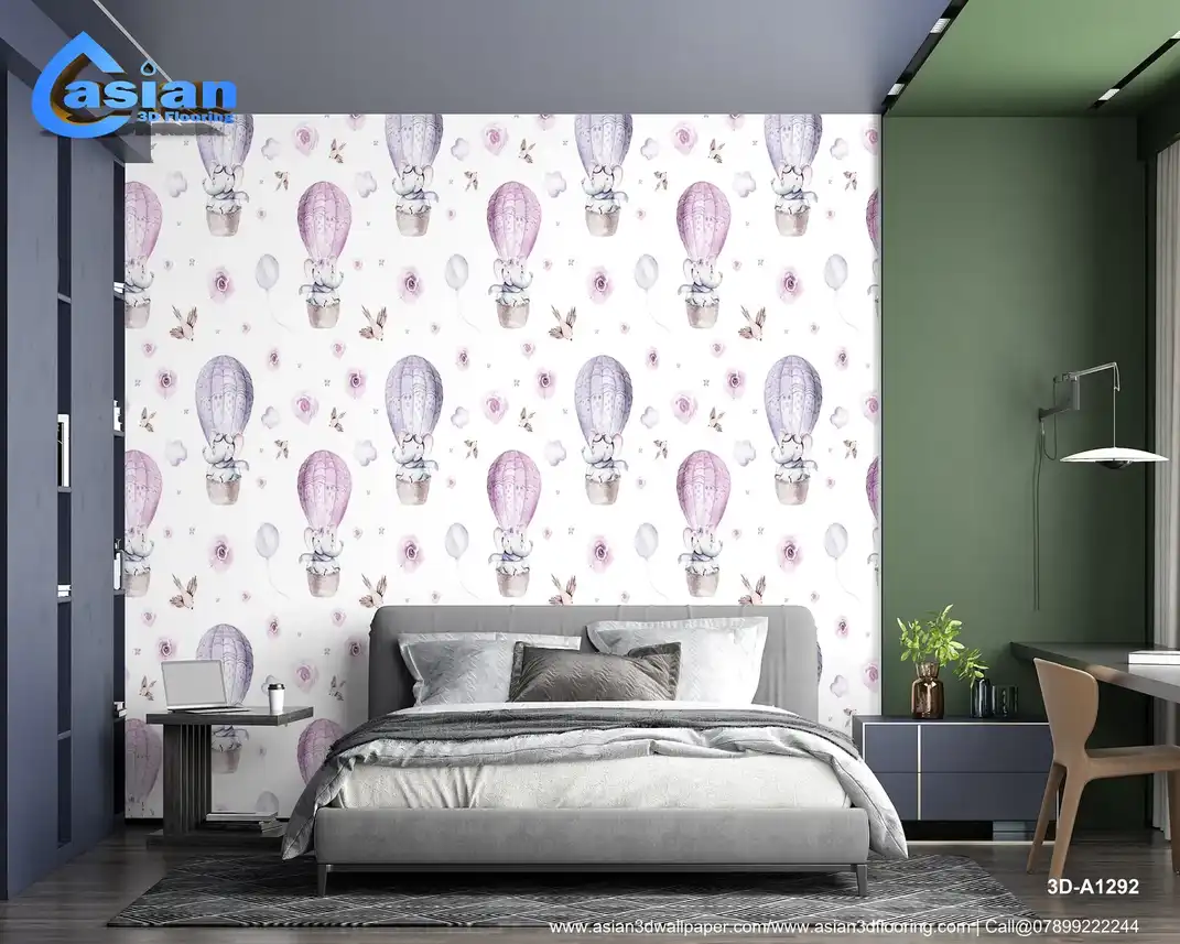 Whimsical Bunny and Bird Hot Air Balloon Wallpaper for Nurseries