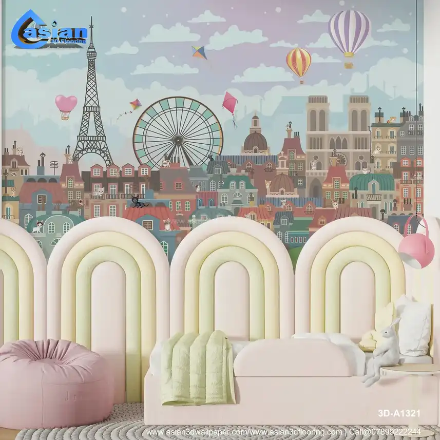 Charming Paris Cityscape Wallpaper with Eiffel Tower, Hot Air Bal