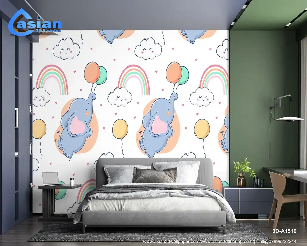 Vibrant Rainbow and Cloud Wall Mural with Balloons for Kids? Room