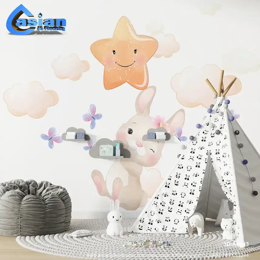 Cute Bunny and Moon Wallpaper for Kids' Rooms