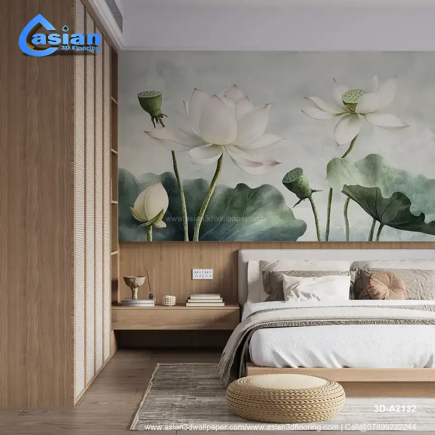 Serene Lotus Bloom: Elegant Wall Mural with Soft Floral Design