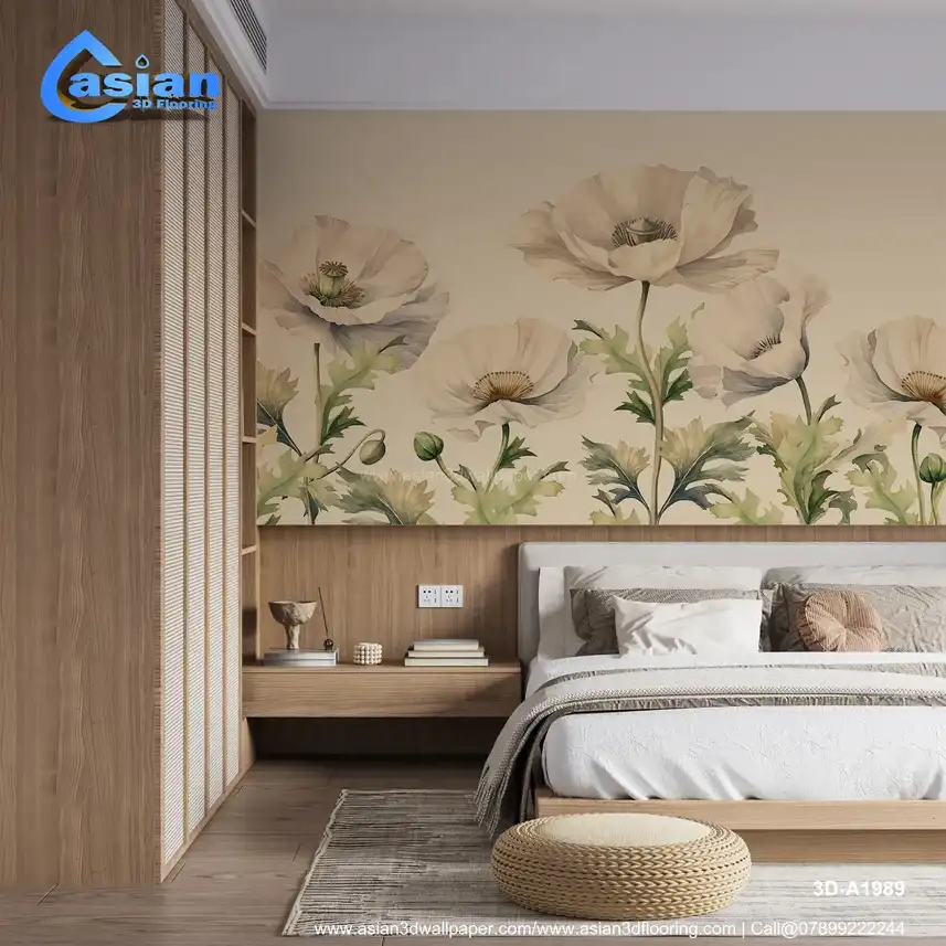 Watercolor Floral Wallpaper with Soft Earthy Tones and Greenery