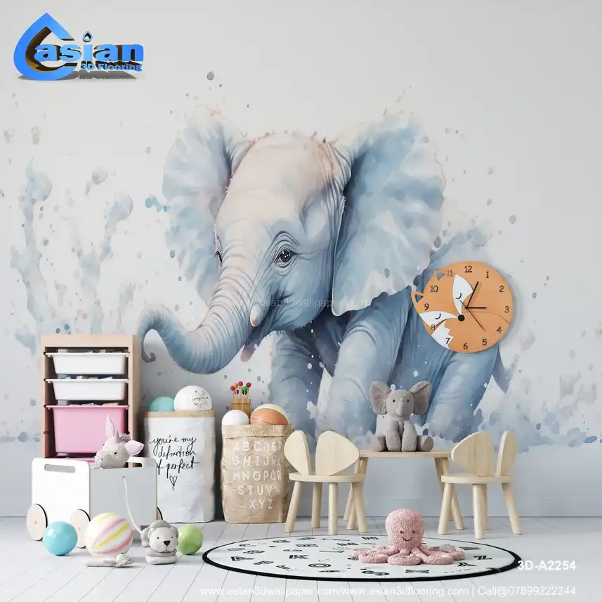 Playful Baby Elephant: Whimsical Watercolor Art Print